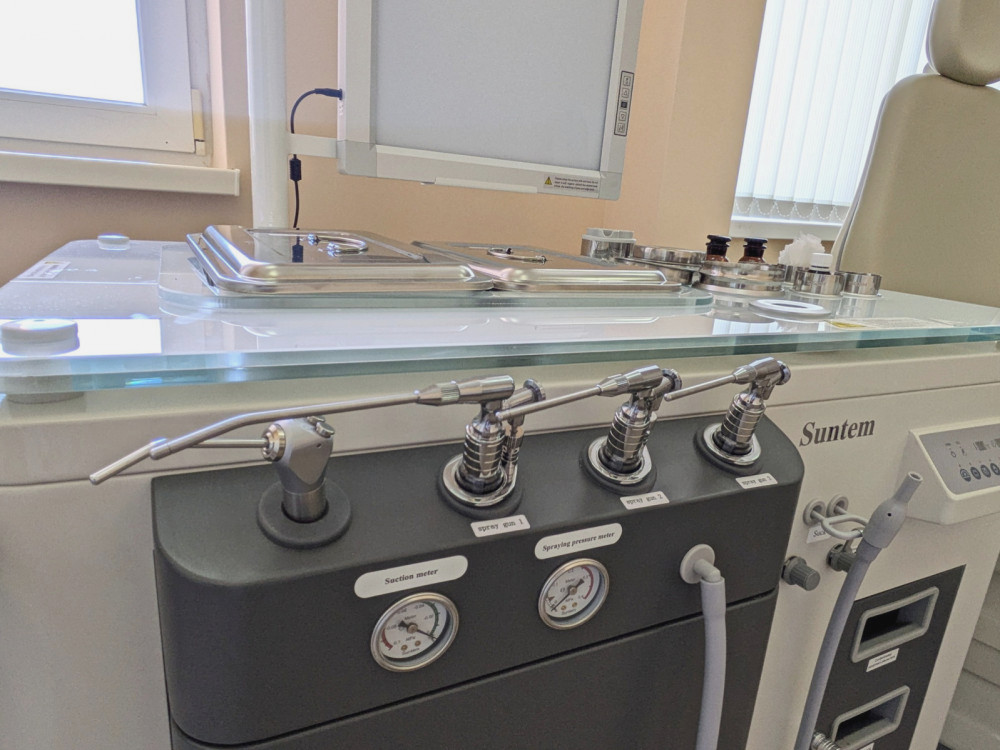 Центр оснащен современным медицинским оборудованием, включая ЛОР-комбайн с различными функциями, позволяющим проводить отоскопию, ларингоскопию, риноскопию, капельное орошение носа и другие диагностические процедуры.