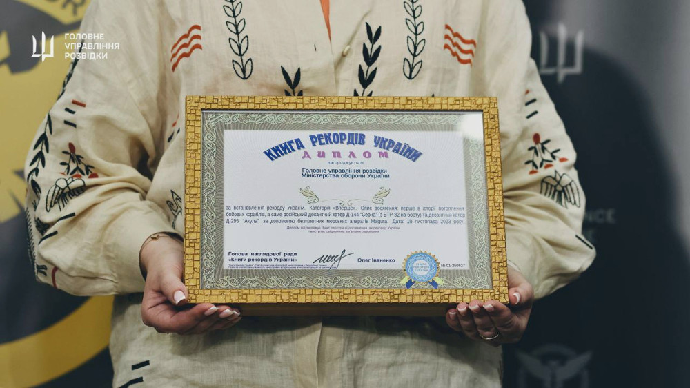 Представители Книги рекордов Украины официально подтвердили пять военных достижений, достигнутых благодаря морским дронам MAGURA, и вручили сертификаты Главному управлению разведки.