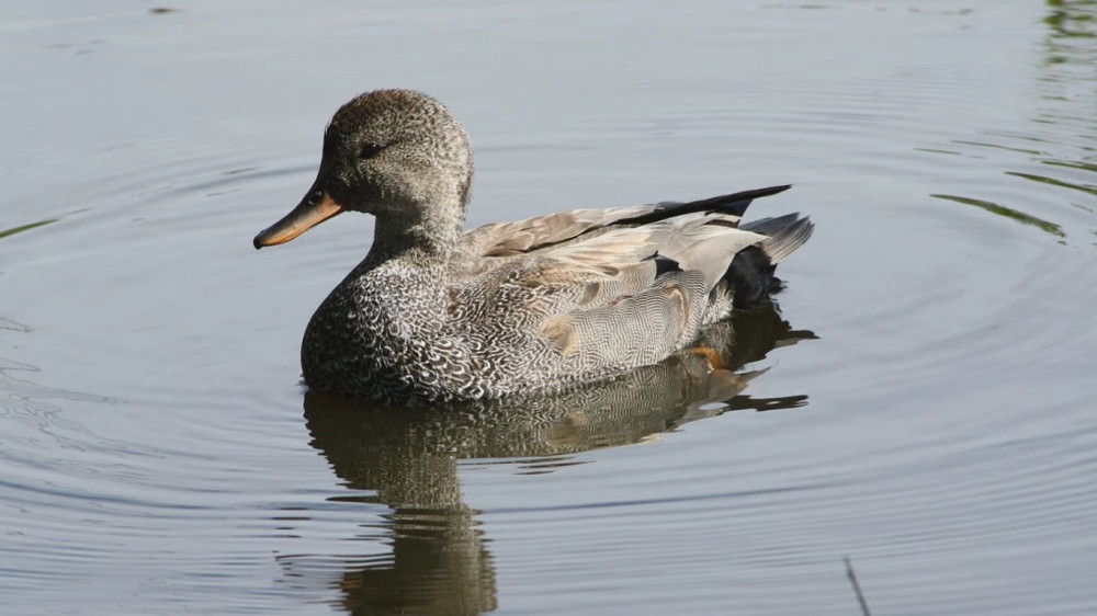 Серая утка — это водоплавающая птица с неприметной, но благородной окраской. Самцы имеют серое тело с мелким рисунком, черный зад и белое пятно на крыле, которое видно во время полета. Самки похожи на обыкновенную селезня, но светлее и с менее выраженным рисунком. Утята пушистые, коричнево-желтого цвета.