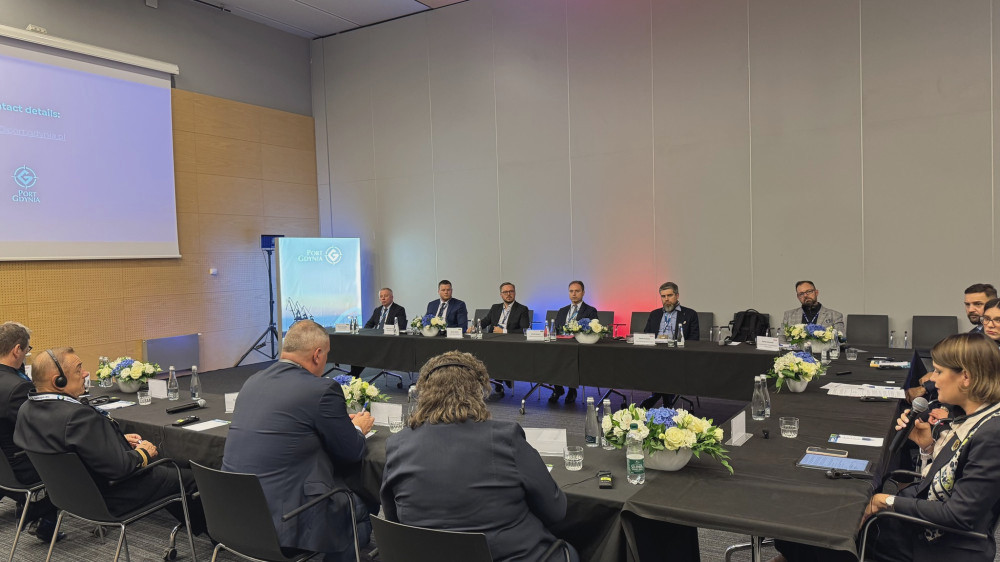 В рамках мероприятия состоялся круглый стол, на котором Дмитрий Назаренко, руководитель Одесского филиала, рассказал о деятельности украинских портов в условиях войны.