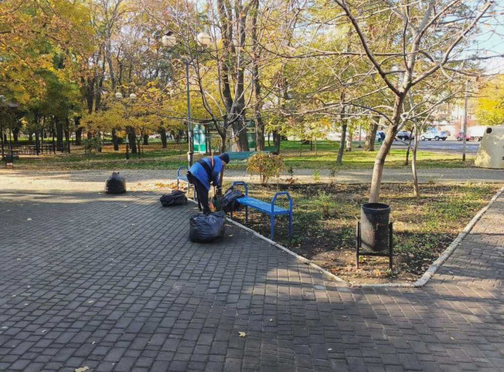 Кроме того, в рамках благоустройства, коммунальщики провели покраску скамеек, урн и части фасада бювета, расположенного на углу Крымского бульвара и ул. Заболотного.