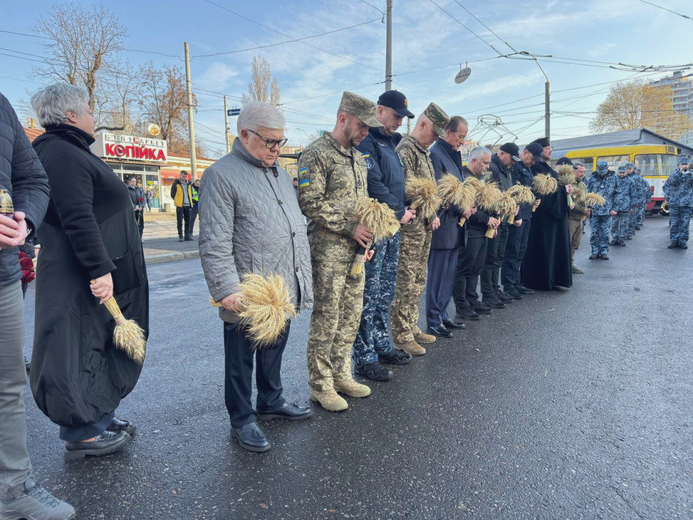 В связи с трагической датой на бульваре Гетмана Сагайдачного в Одессе состоялся ритуал возложения цветов и колосьев к памятнику жертвам Голодомора в Украине.