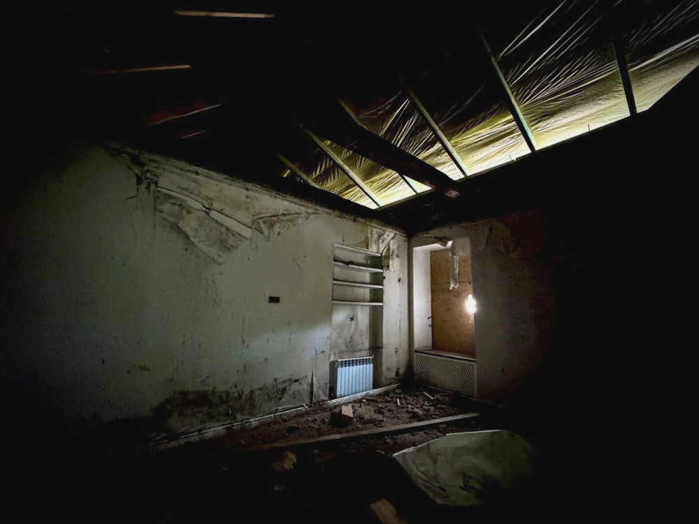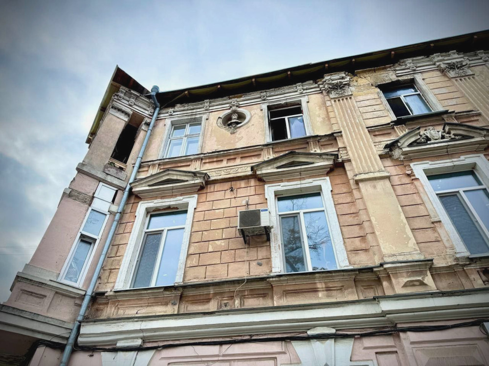 Ремонтные работы в доме на улице Софиевской продолжаются. Завершены работы по укреплению стен и крыши в наиболее пострадавшей части. Однако остается участок крыши, который требует внимания.