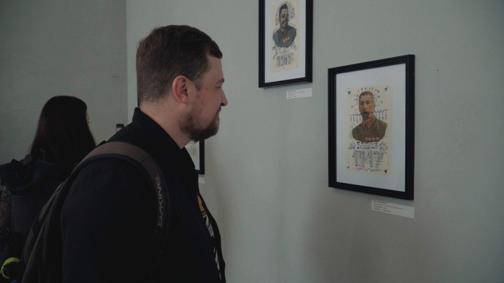 "До мобилизации я занимался живописью и керамикой, что приносило мне доход, но служба стала новым толчком для моего творчества. Во время службы я случайно наткнулся на старые советские агитационные материалы в кабинете допризывной подготовки. Это вдохновило меня: я представил себя учеником того времени, которого заставляют изучать "героев" империи, и как маленький акт сопротивления начал раскрашивать эти портреты, деконструируя миф. Каждая работа стала формой протеста и фиксацией нашего времени борьбы," - рассказал художник.