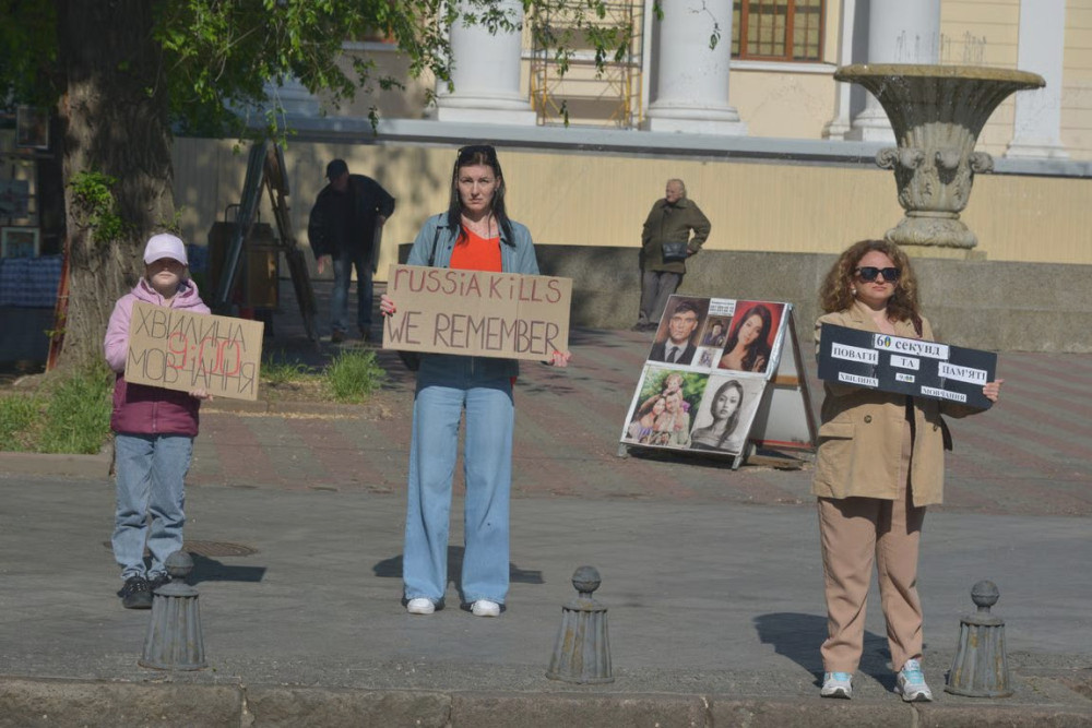Утром 10 мая в центре Одессы прошла акция под названием "Минутка молчания". Ровно в 9:00 правоохранительные органы временно закрыли часть Соборной площади, призывая водителей и пешеходов остановиться и почтить память погибших. Участники вышли на проезжую часть с плакатами, чтобы акцентировать внимание на важности общей памяти.
