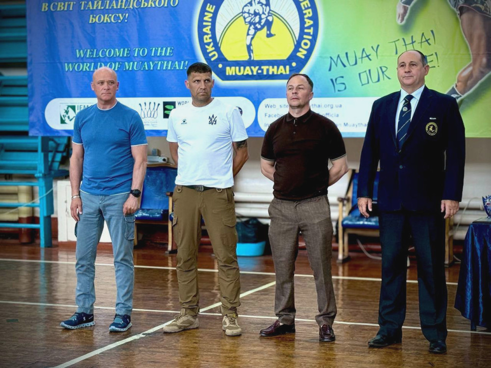 Юных спортсменов приветствовали почетные гости, среди которых президент Национальной федерации муай тай и мэр Одессы Геннадий Труханов: