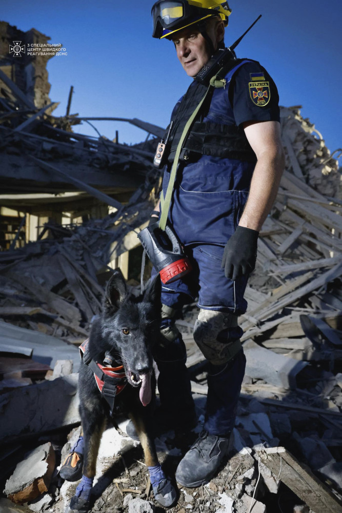 Кинологи вместе со специально подготовленными собаками тщательно проверили завалы на наличие возможных выживших под обломками разрушенного здания. На данный момент не поступало новых сообщений о жертвах или пострадавших от российского обстрела.