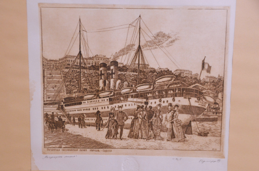 Серед експонатів - офорти, що відображають «одеські» серії: «Одеса XIX століття», «Одеса та Франція», «Життя Одеси в кінці XIX - на початку XX століття».