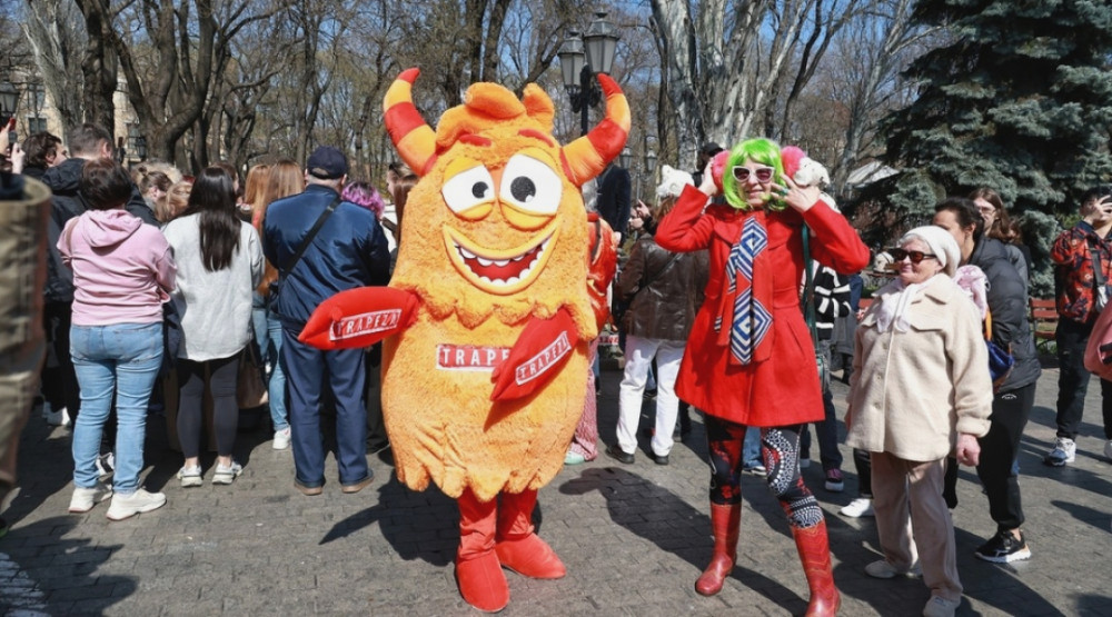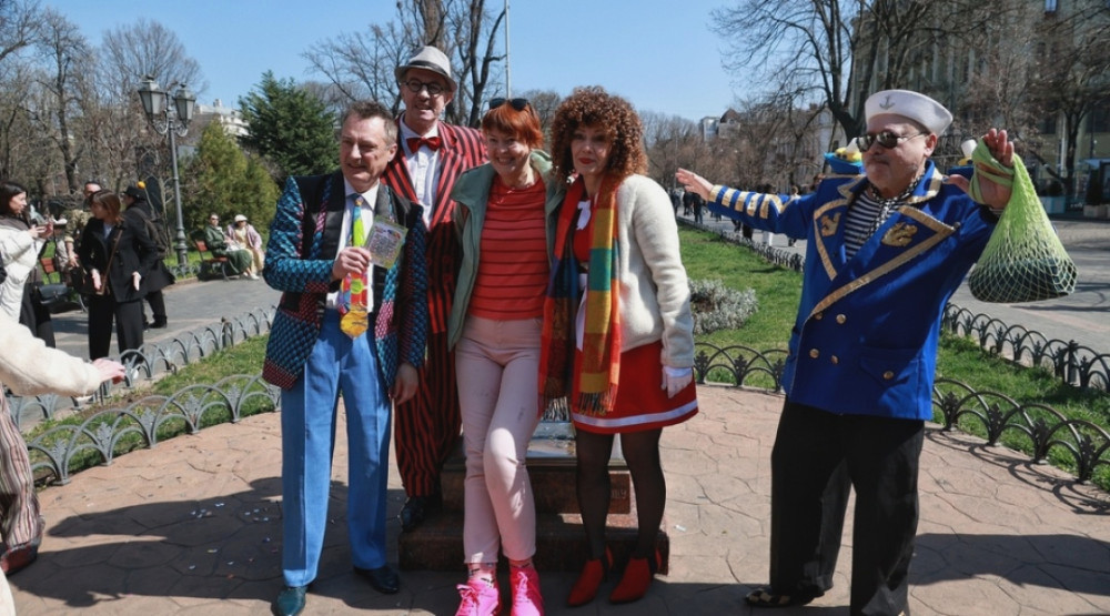 1 квітня в Одесі, в міському саду, актори театру «Маски» порадували глядачів святковою програмою на честь Дня сміху.