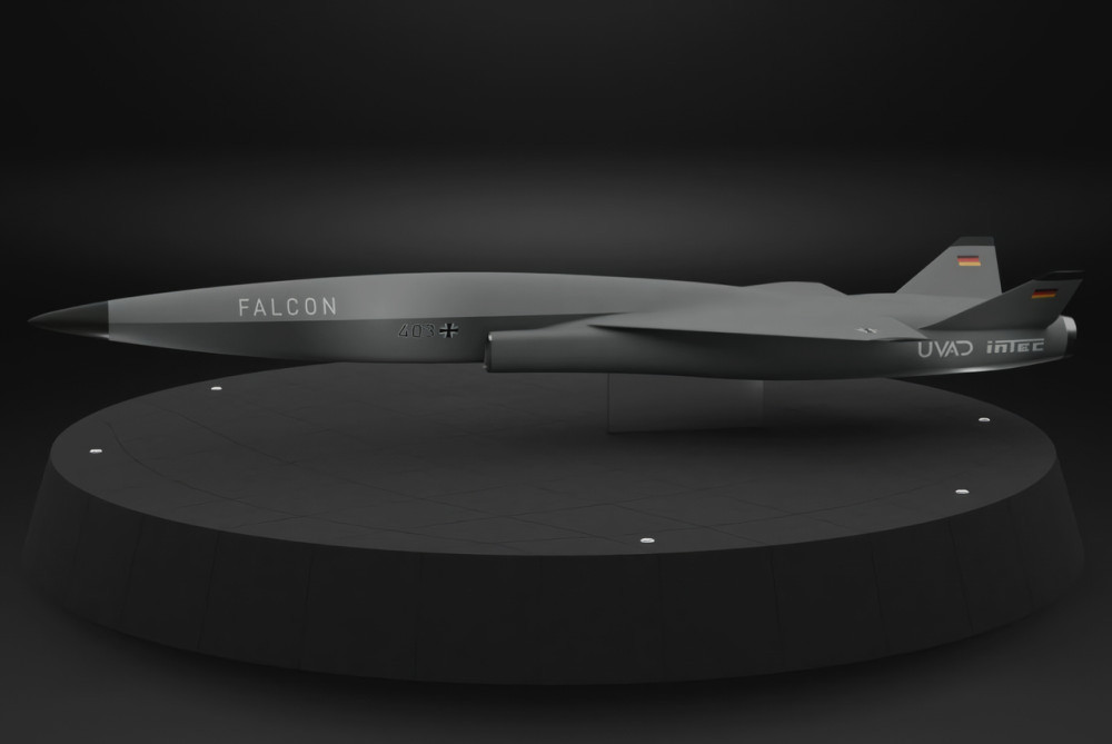 На виставці технологій Air Force Tech Summit у Берліні компанії INTEC Industrie-Technik з Німеччини та UVAD Technologies з Канади вперше продемонстрували нову модель дрону Falcon у натуральну величину. Про це повідомляє Hartpunkt.