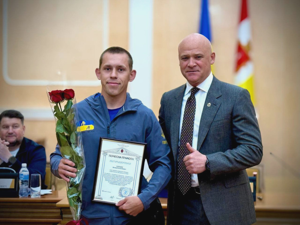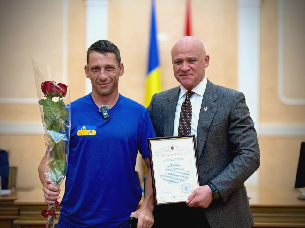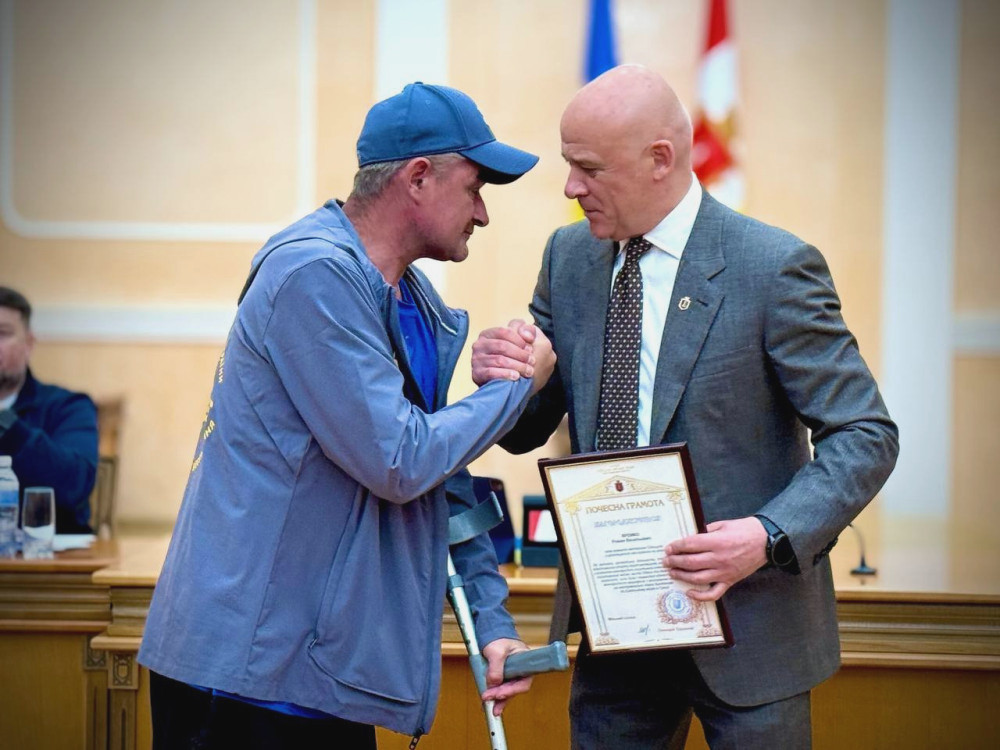 За активну участь у громадських справах, популяризацію адаптивного спорту серед ветеранів, значний внесок у міжнародну спортивну співпрацю та підвищення позитивного іміджу Одеси за кордоном, а також за проявлену мужність і командну єдність під час міжнародного марафону в Греції.