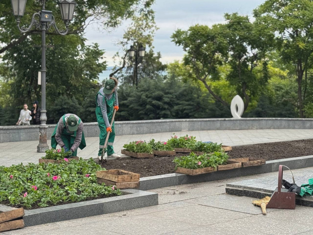 Перші літні квіти вже прикрасили частину Біржової площі та клумби біля Приморської адміністрації, замінивши весняні квіти. У цьому році планується висадити близько 350 тисяч літніх рослин.