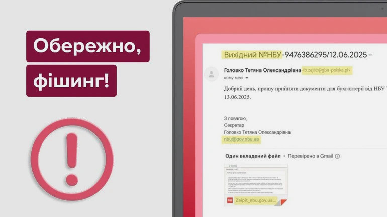 Національний банк України виявив нову шахрайську кампанію, що полягає у розсилці листів з небезпечними вкладеннями, які намагаються видаватися за офіційні комунікації НБУ.