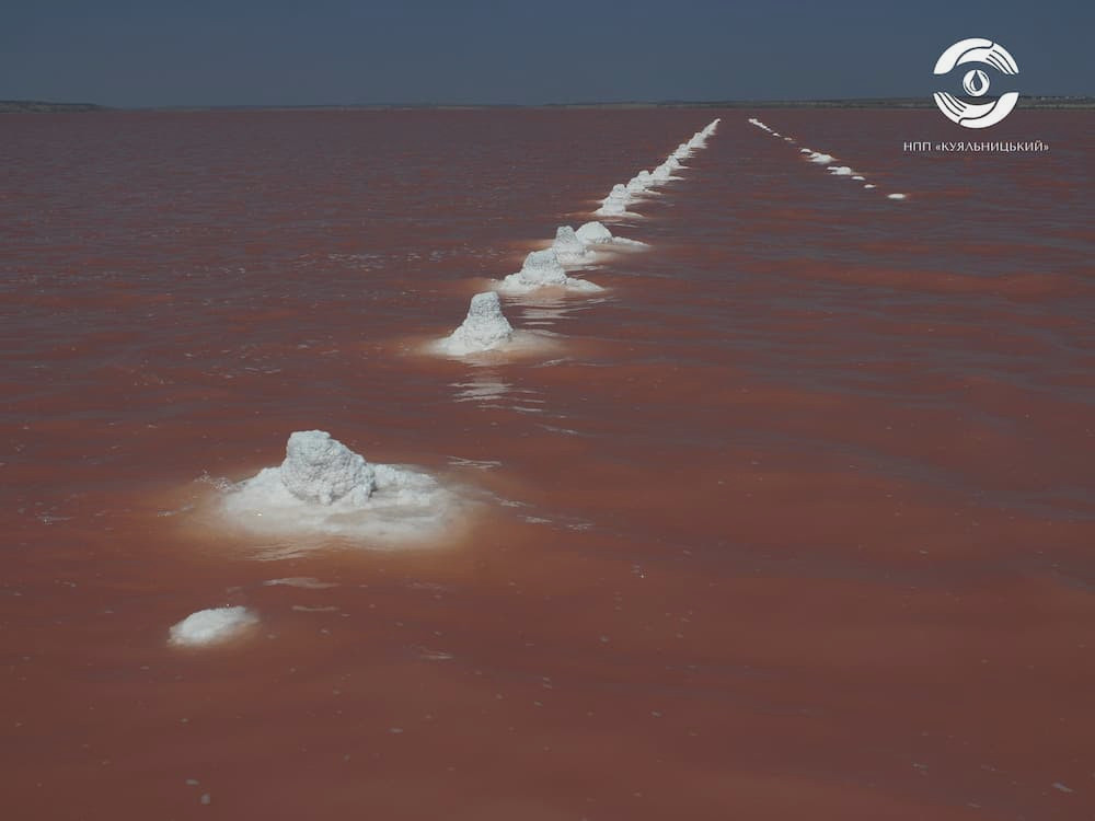Соляні відкладення – це звичайне явище, відзначають фахівці НПП «Куяльницький». Цього літа через недостатню кількість опадів та високі температури лиман знову пересох. Завдяки своїй високій солоності тут залишається багато кристалізованої солі, яка може набувати рожевого відтінку через наявність одноклітинних водоростей дуналліела. Ці водорості живуть у воді, але в умовах підвищеної солоності починають виробляти бета-каротин, що надає їм темно-помаранчевий колір, допомагаючи виживати в екстремальних умовах.