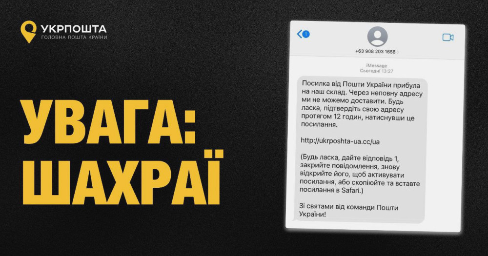 Офіційний ресурс — ukrposhta.ua. Якщо ви отримали повідомлення, в якому згадується "Пошта України" з незнайомих номерів, це може бути шахрайство.
