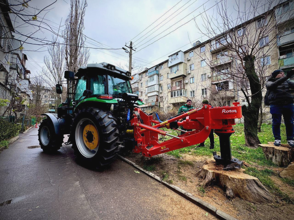 «Ми також спостерігали за роботою нової машини для викорчовування пнів. За словами працівників, ранні методи займали до кількох днів для видалення одного пня. З новим обладнанням ця задача займає лише годину для пня діаметром до метра», - зазначив мер Одеси Геннадій Труханов.