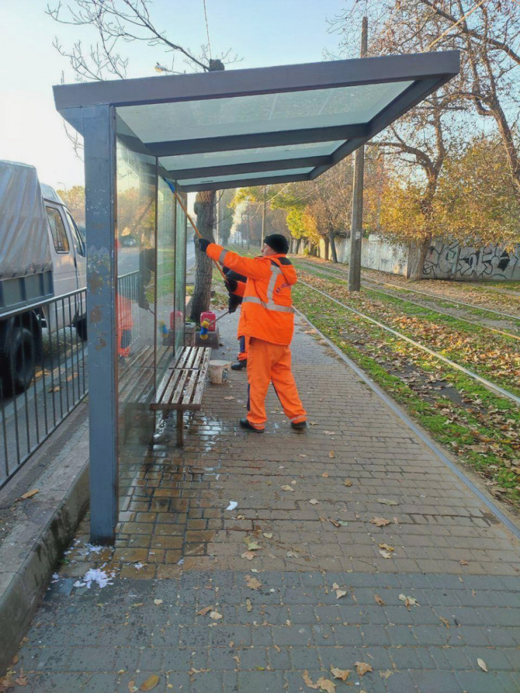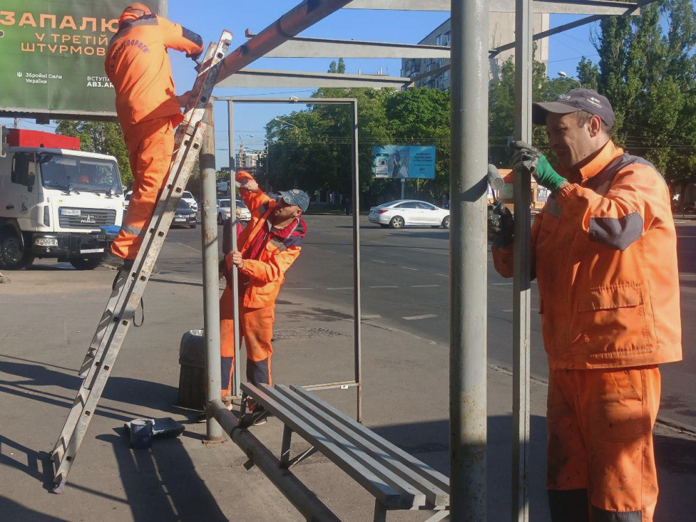 Спеціалісти підприємства регулярно проводять прибирання території навколо зупинок, а також ремонтують урни, лавки та павільйони, виконуючи їх миття та фарбування.