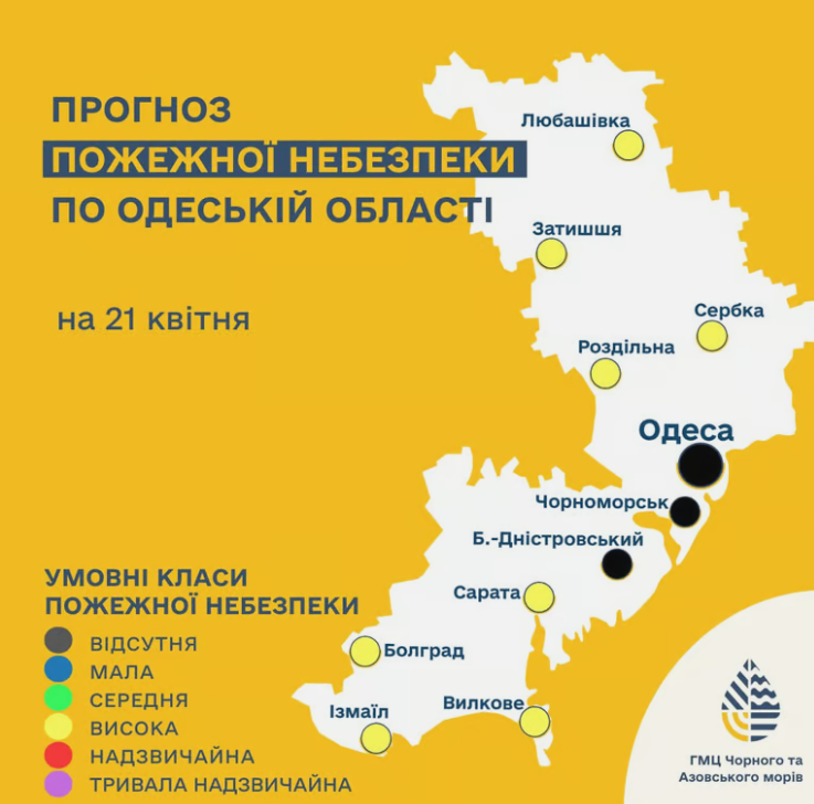 За даними синоптиків, ризик зберігатиметься та пошириться по всій території Одеської області. Високий рівень небезпеки оголошено в населених пунктах: