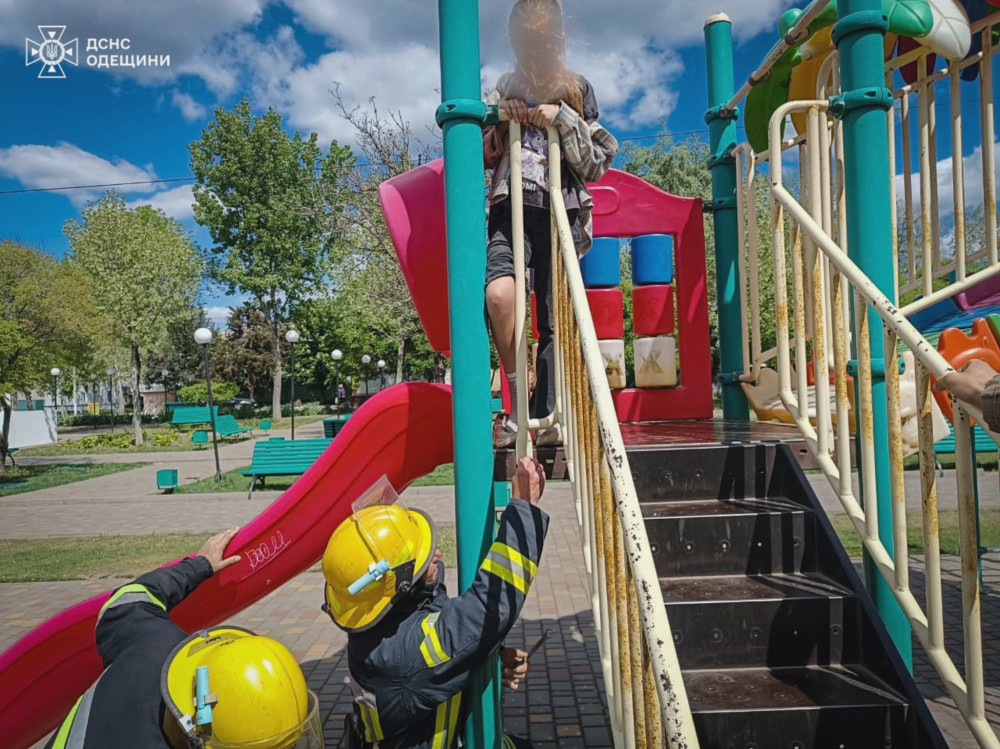 На дитячому майданчику в Кілії стався неприємний інцидент. Дев'ятирічна дівчинка, граючись на гірці, намагалася просунути ніжку між металевими елементами, але не змогла звільнитися.