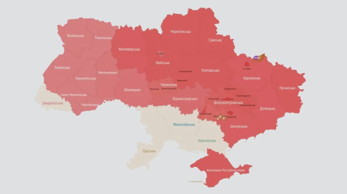 Оновлено: о 01:09 військові повідомили про скупчення ударних дронів у кількох областях України.